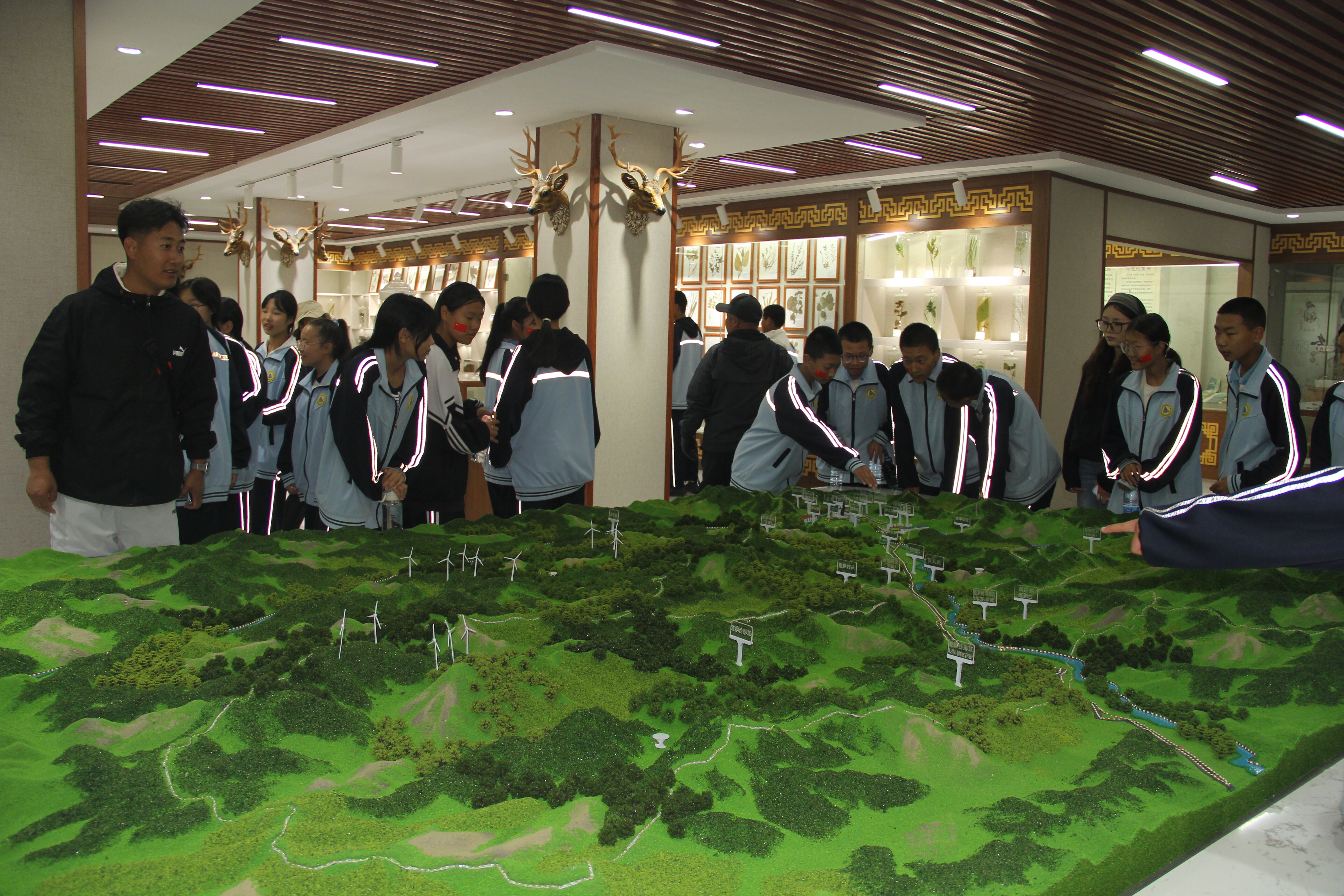 清晨7时,校园楼前集结号角吹响,师生们带着对活动的期待整装出发。活动路线精心串联起索伦镇的特色节点:从索伦镇新时代文明实践所启程,踏入层林叠翠的药王峰,沉浸式感受家乡的自然生态之美;走进气象站,近距离观察观测设备,聆听工作人员讲解气象知识,直观感受小镇在科技服务生活中的点滴进步;最后途经索伦大桥,伴着沿途风光,满载探索的收获返回索伦中学,每一段路程都藏着别样的体验与感悟。