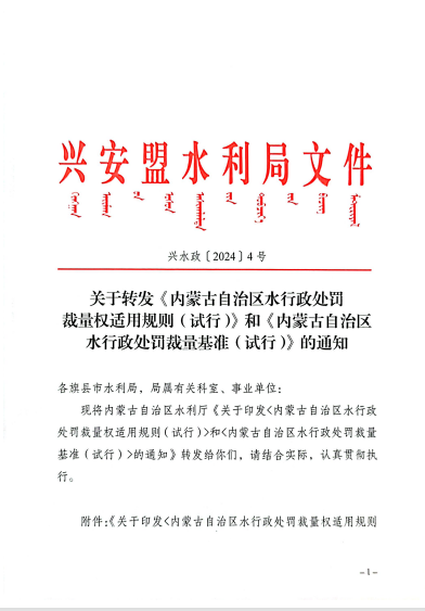 内蒙古自治区水行政处罚裁量基准(试行)的通知