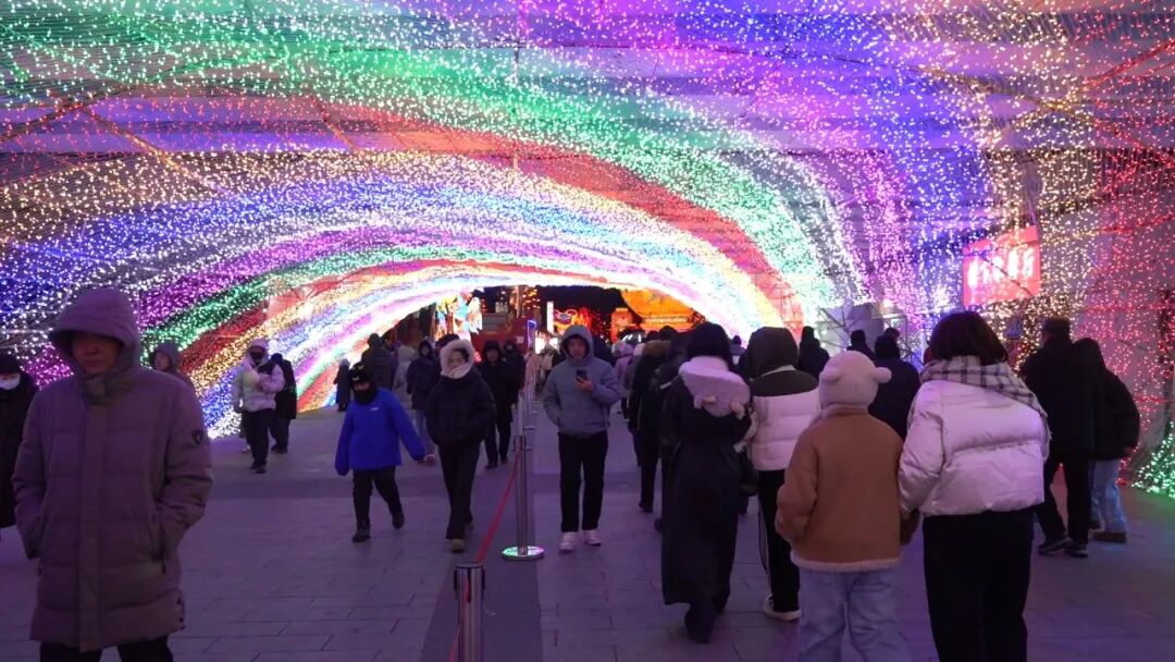 除了赏灯环节,灯会还打造了多元化功能区,将“赏灯+年俗+娱乐+消费”深度融合,构建沉浸式、体验式、互动式的新式灯会场景。舞台演艺区持续带来精彩演出,特色美食街汇聚热饮、涮串、烤冷面、手抓饼、关东煮等特色小吃,还有东北铁锅炖等暖心美食暖胃又暖身。年货大集上,大米、对联、冻货、冻梨、冻柿子、海鲜水产等商品琳琅满目,手工装饰、儿童玩具等年货一应俱全,满足群众采购需求。XR体验馆、泡泡取暖屋、套圈等娱乐项目同步开放,拍照打卡点位遍布园区,让不同年龄段的游客都能找到乐趣,实现“尝到美味、感受温暖、选购年货、尽兴游玩”的一站式体验。