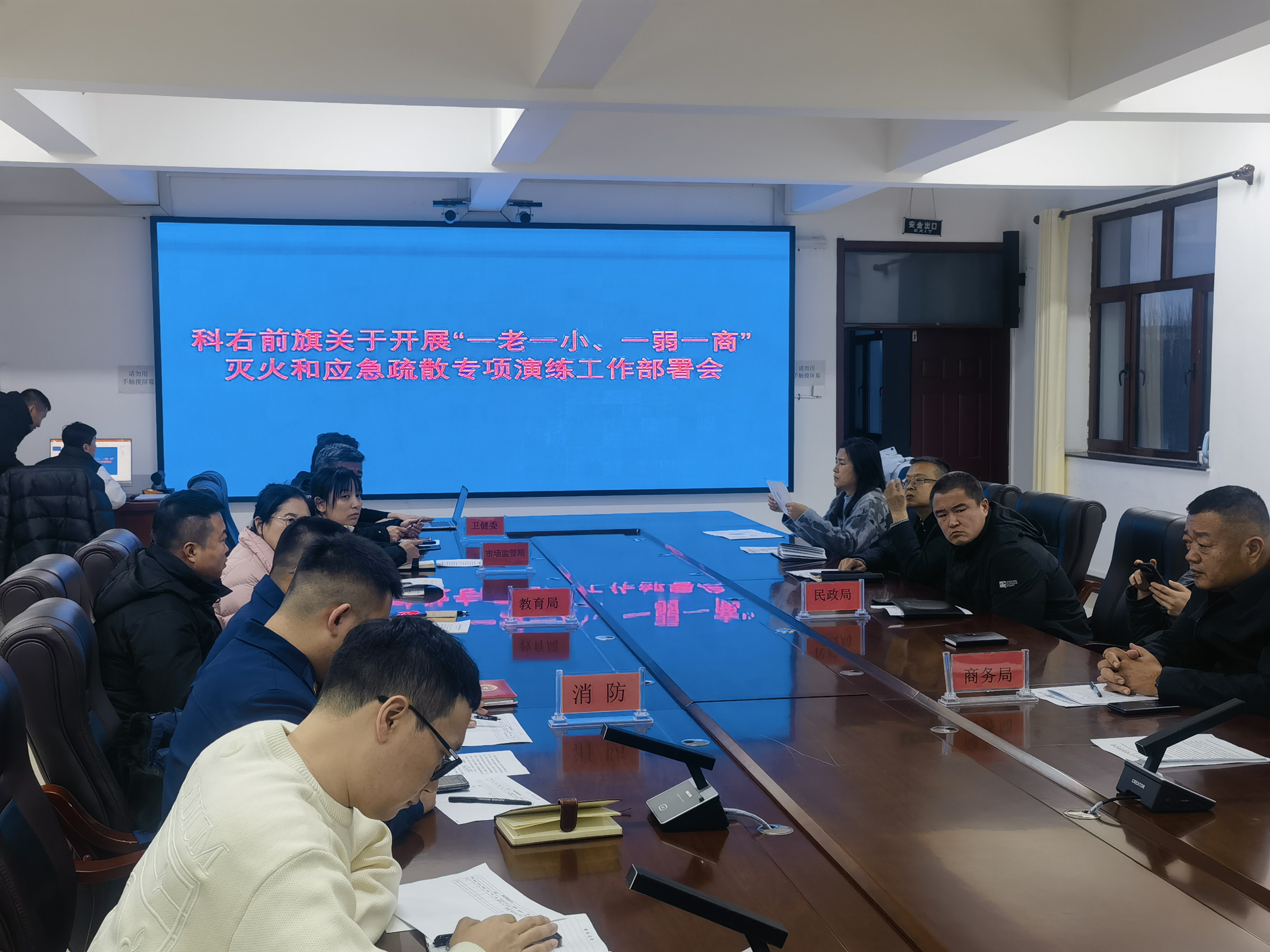 为认真落实兴安盟安全生产委员会办公室关于“一老一小、一弱一商”场所灭火和应急疏散演练工作部署,汲取近期火灾事故教训,进一步提升全旗重点人群和场所的消防安全意识及应急处置能力。2025年12月18日,旗安全生产委员会办公室组织召开“一老一小、一弱一商”场所灭火和应急疏散演练工作部署会议。旗应急管理局、民政局、教育局、卫健委、商务局、市场监管局、消防救援大队等部门参加会议。