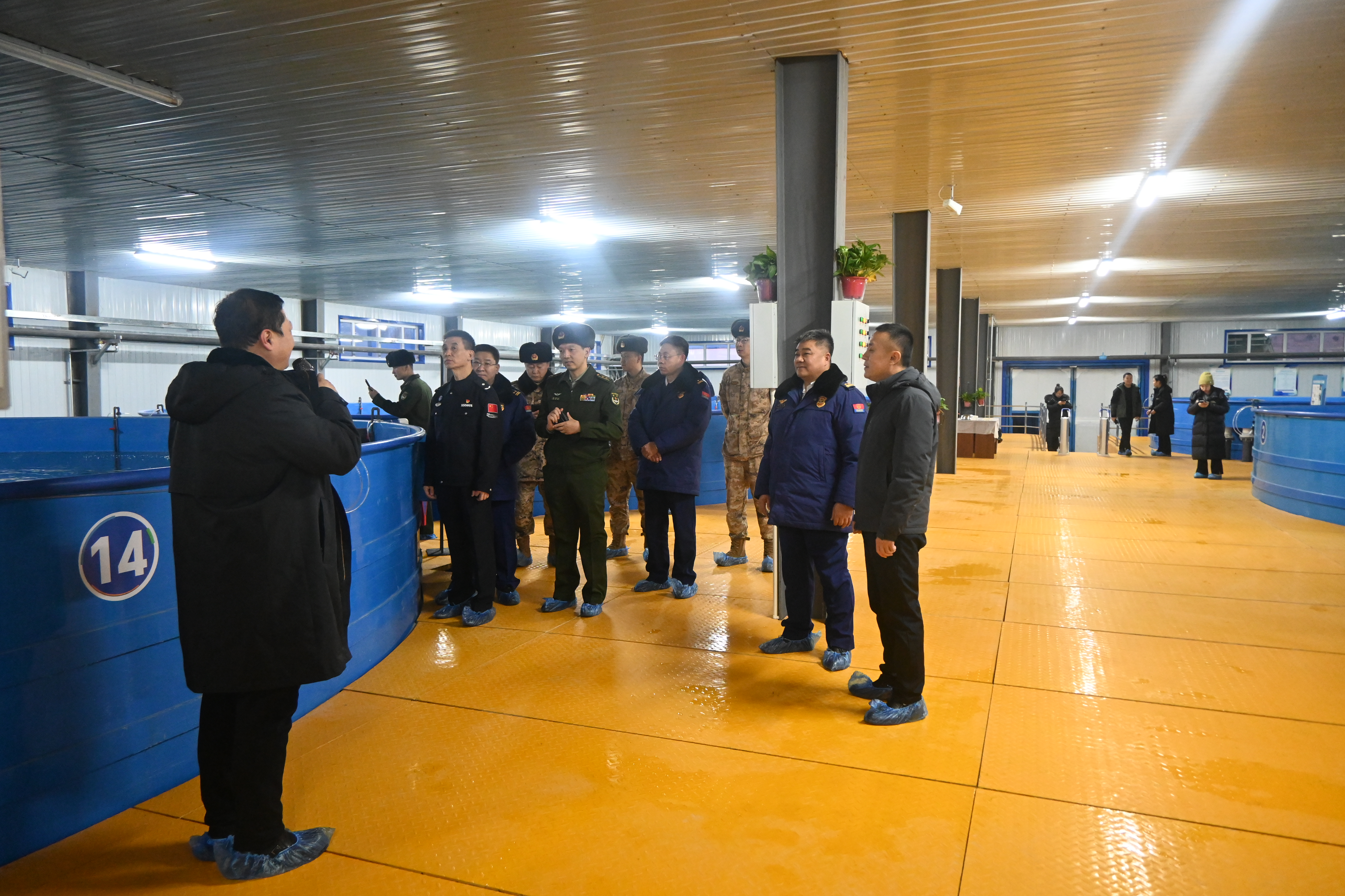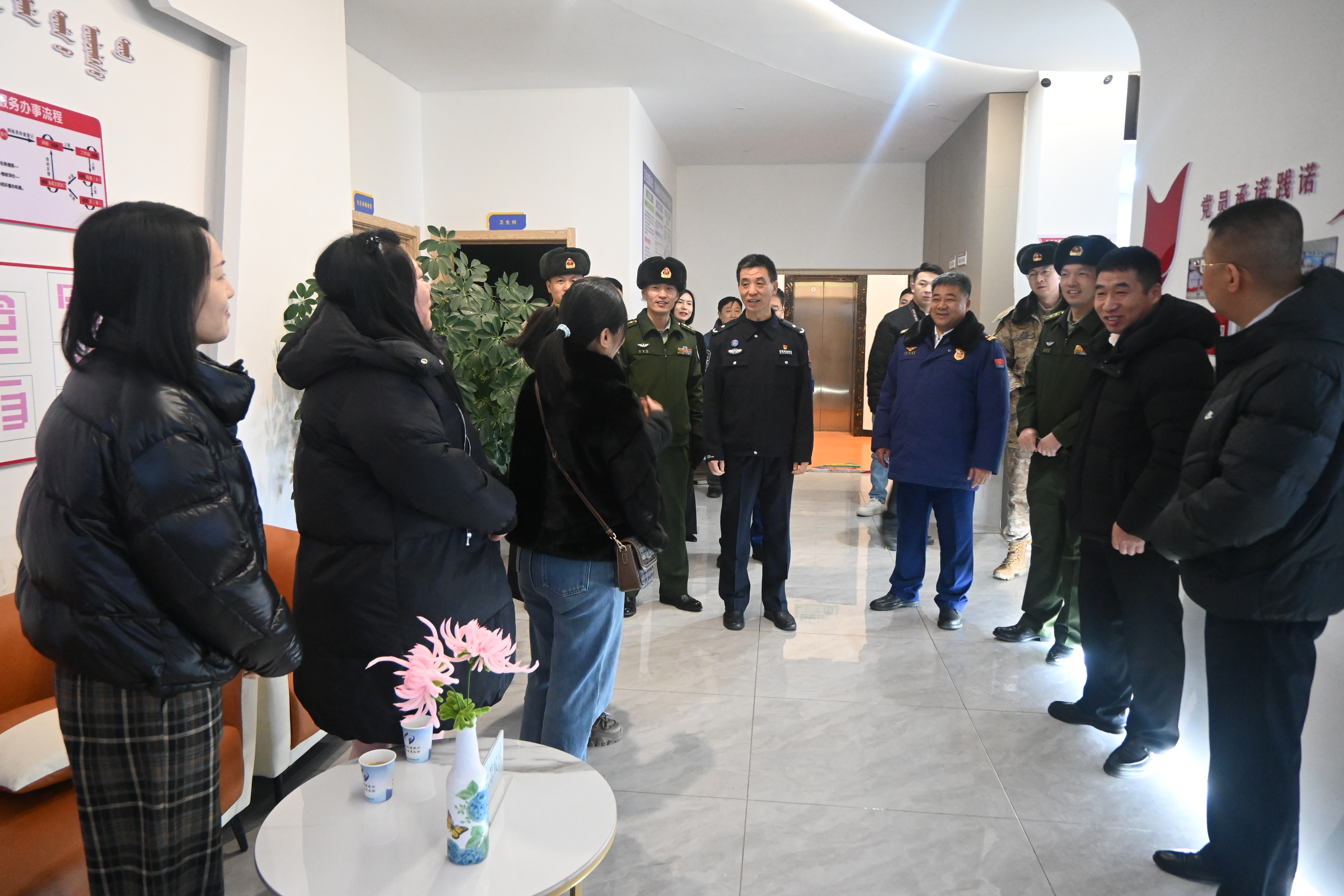 活动首站,大家走进兴安北京科技园和伊利乳业,实地感受我旗在科技创新和产业转型升级方面的澎湃动力。在旗党群服务中心退役军人服务站,详细了解了退役军人服务保障体系建设情况,并与4位已顺利安置的现役军人家属进行了亲切交谈,她们纷纷表示:“组织的关怀让我们在‘后方’倍感温暖,更加支持亲人在部队安心建设。”这一幕,生动诠释了“你为国尽忠,我为你守家”的双拥真情。随后来到智慧渔业养殖基地,观摩现代科技为寒旱地区发展高效渔业赋能,探索出的可复制可推广的创新实践。