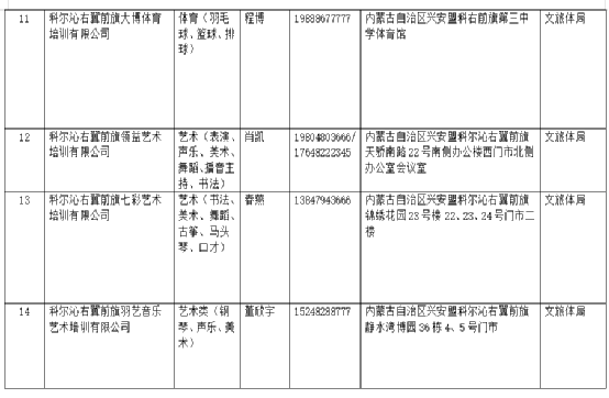 科右前旗校外培训机构最新白名单公示