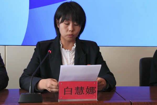 接下来请科右前旗科尔沁镇武装部部长白慧娜作表态发言。
