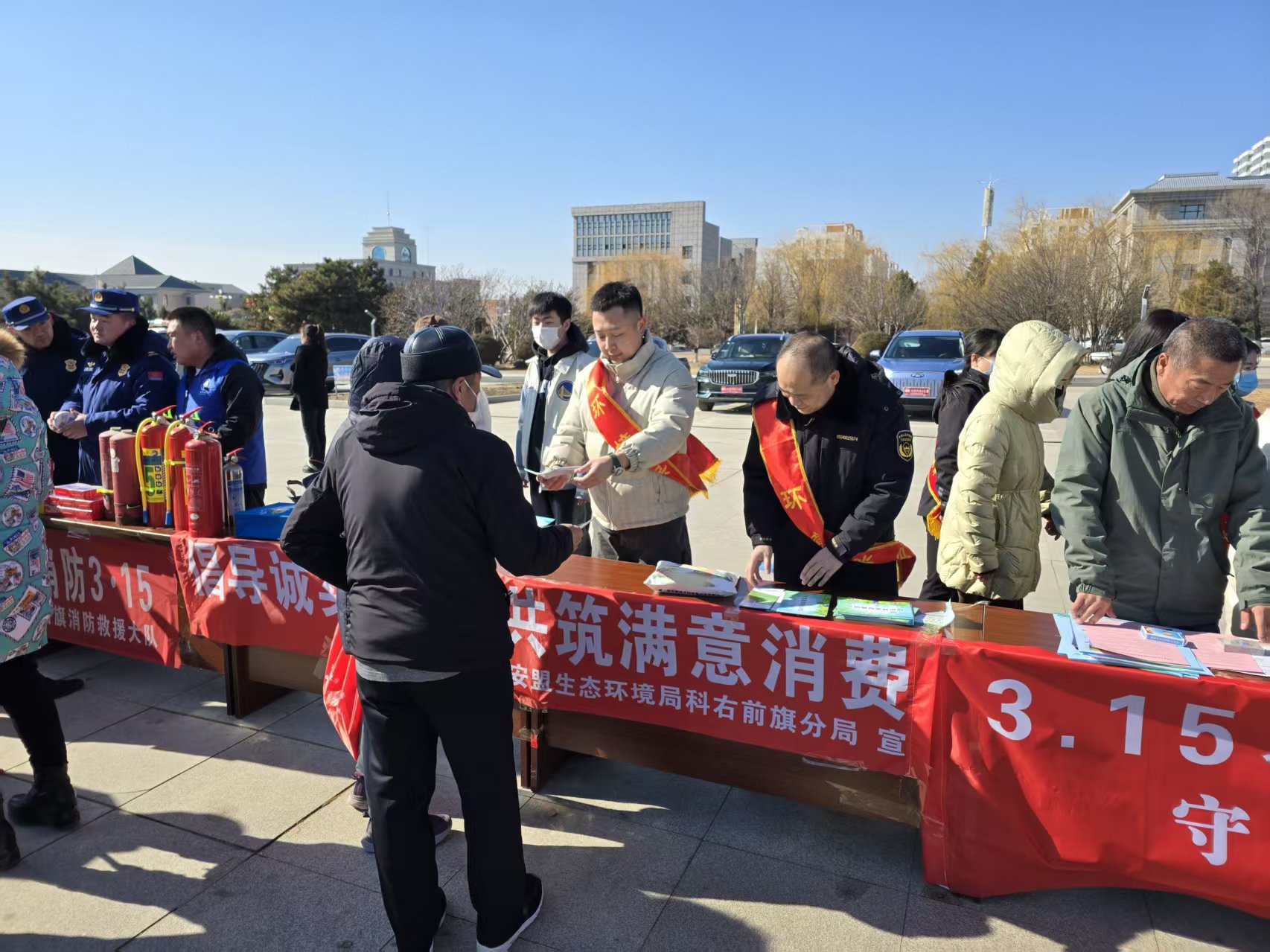 3月15日,兴安盟生态环境局科右前旗分局开展以“倡导诚实守信、共筑满意消费”为主题的宣传活动。