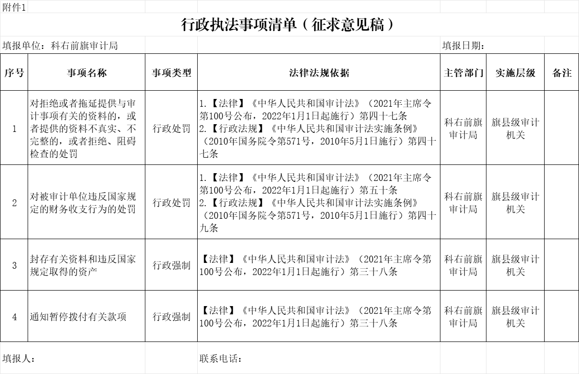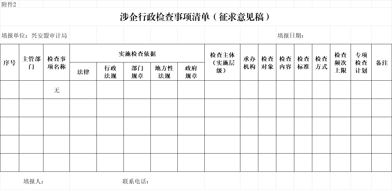 行政执法事项清单、涉企行政检查事项清单(征求意见稿)