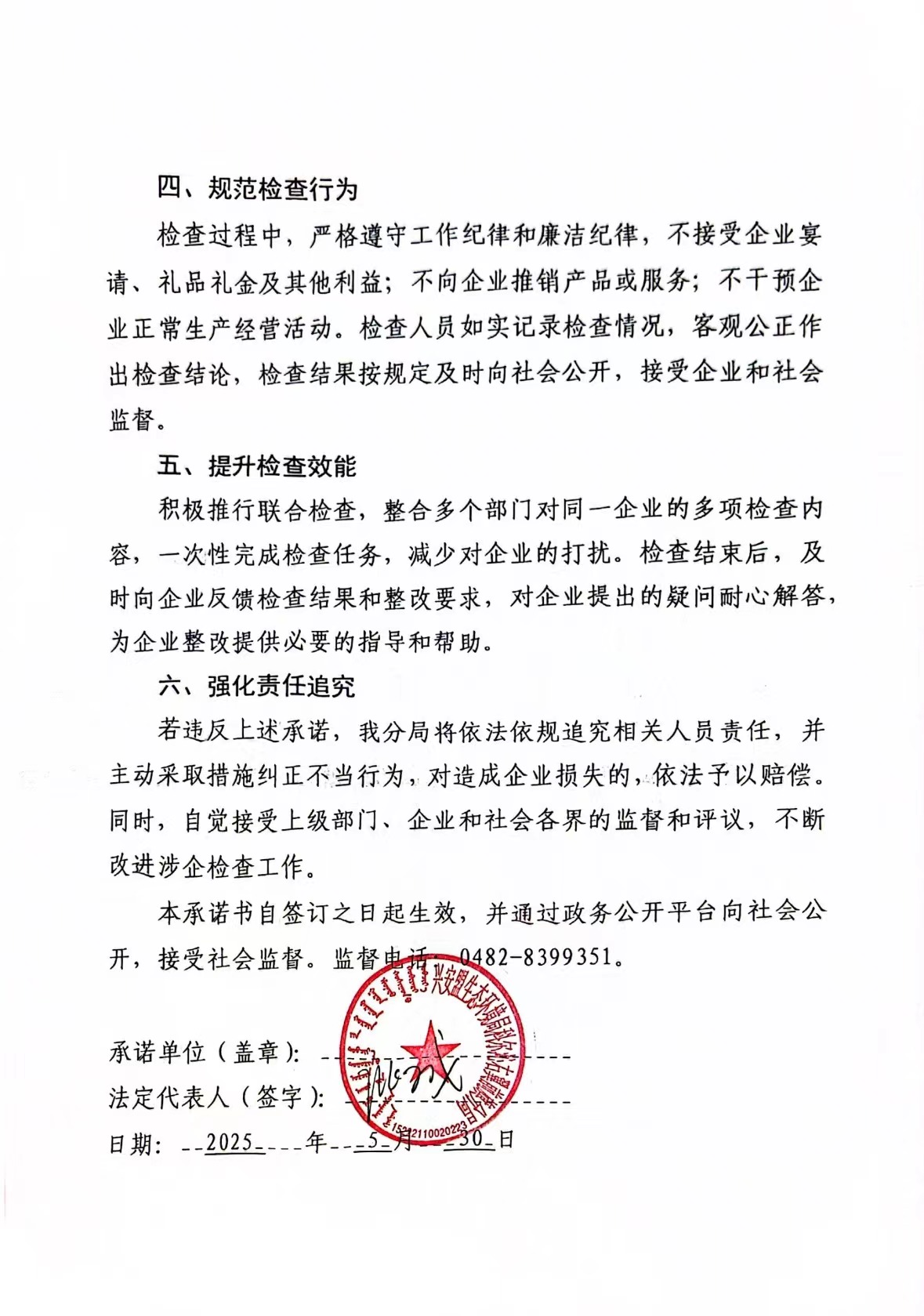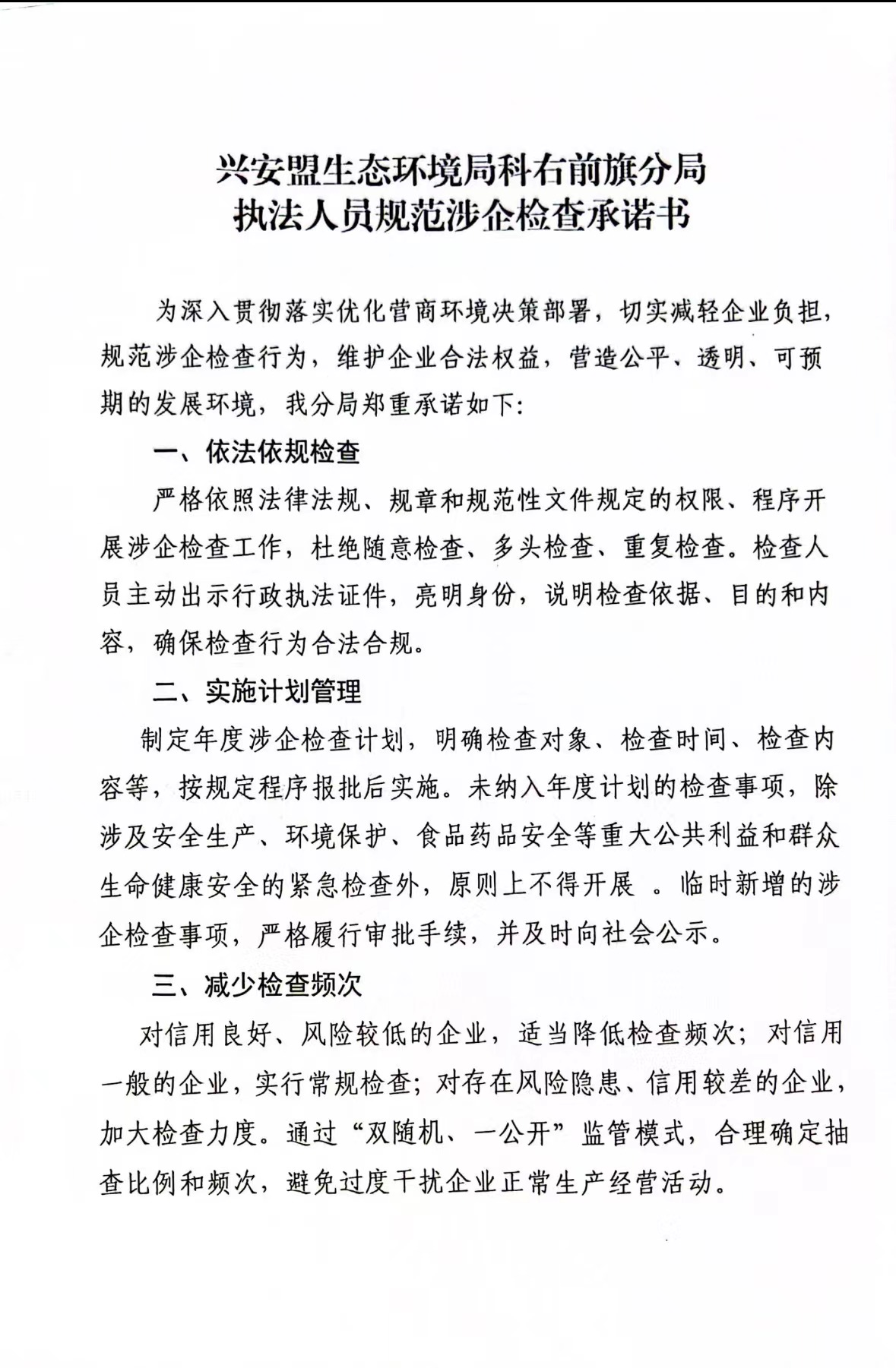 兴安盟生态环境局科右前旗分局 执法人员规范涉企检查承诺书
