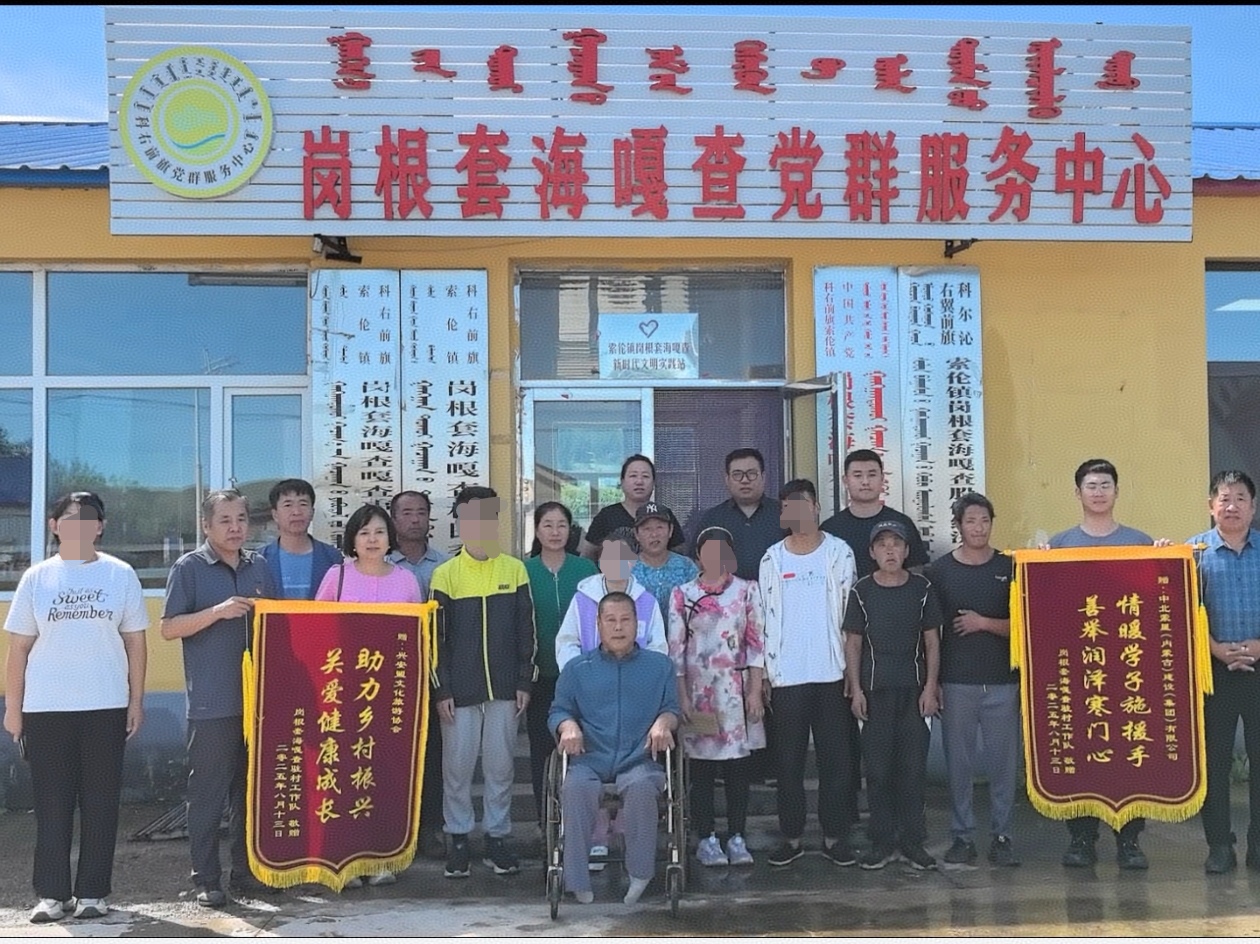 8月13日,一场充满温情的助学金发放仪式在索伦镇岗根套海嘎查新时代文明实践站举行。活动现场,除了暖心的助学金发放环节,更有一幕让人动容的场景——受助学生代表与家长们一同捧着一面鲜红的锦旗,郑重地送到白狼林业局驻村工作队和兴安盟文化旅游协会、中北蒙星(内蒙古)建设(集团)有限公司代表手中。锦旗上“情暖学子施援手,善举润泽寒门心”的烫金大字,不仅是对帮扶单位 善举的由衷礼赞,更凝结着贫困学子家庭对这份温暖帮扶的深深感激。