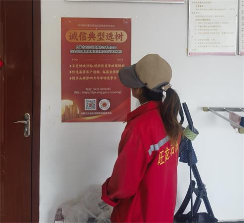 在社区层面,工作人员在札萨克图社区公告栏张贴海报,让居民在日常生活中感受诚信文化,了解政务服务、信用融资服务平台等。倡导居民争做诚信行为的践行者和监督者。