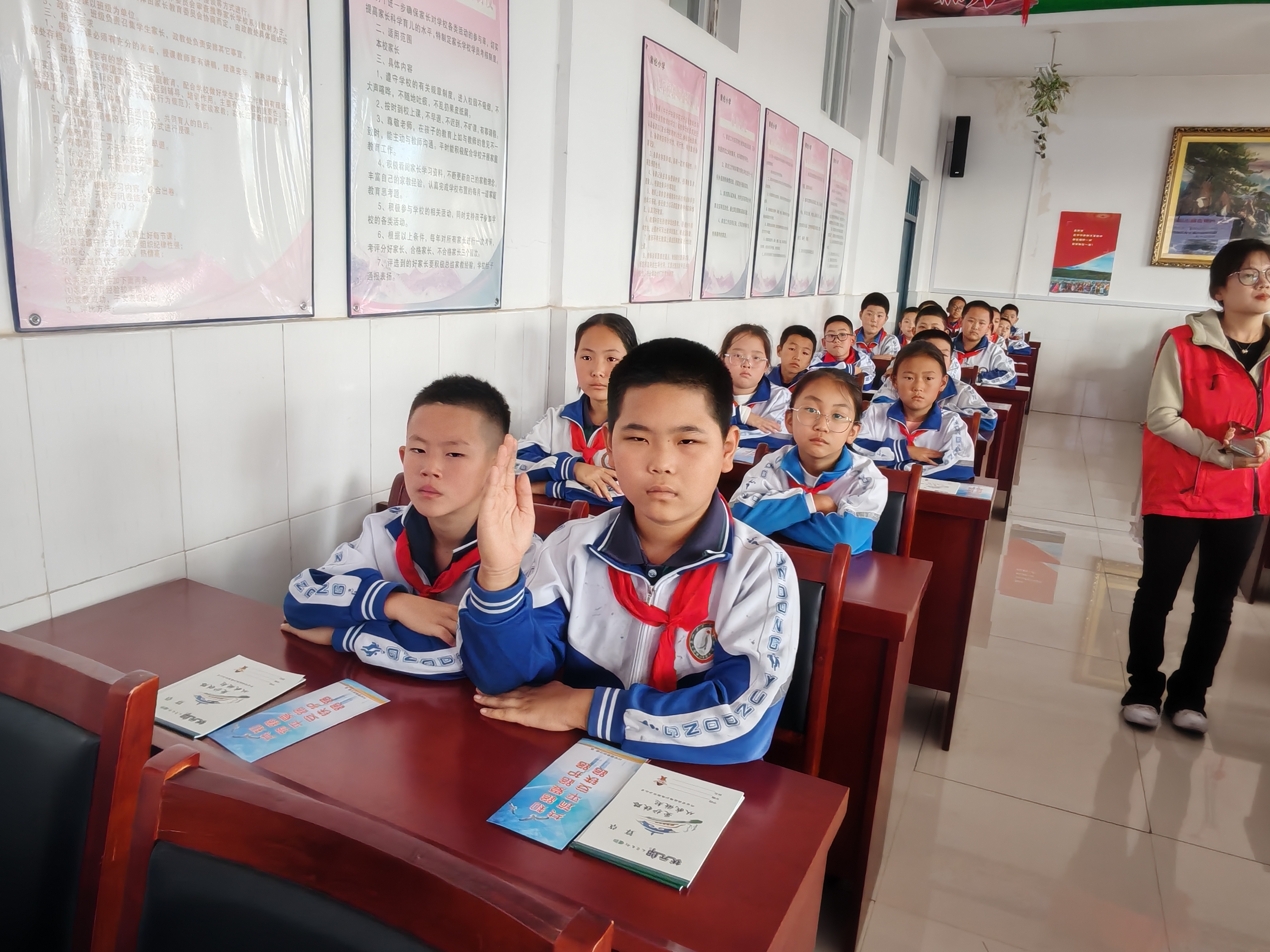 为让教育效果更深入,讲座后还设置了互动问答环节。工作人员针对讲座内容提出趣味问题,如 “如何辨别盗版书籍”“遇到不良网络信息该怎么做” 等,学生们积极举手、踊跃作答,在轻松的互动中巩固知识,进一步强化对 “护苗・绿书签” 理念的理解。现场氛围热烈,掌声与应答声此起彼伏,充分调动了学生们的参与热情。