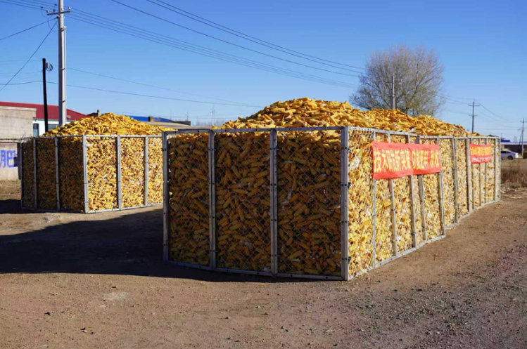 此批网围栏共计3448片,每片规格为2m*3m,每两片围成一个圆囤子,此批网围栏可连续使用3-5年,围起来后可装玉米9000斤左右。
