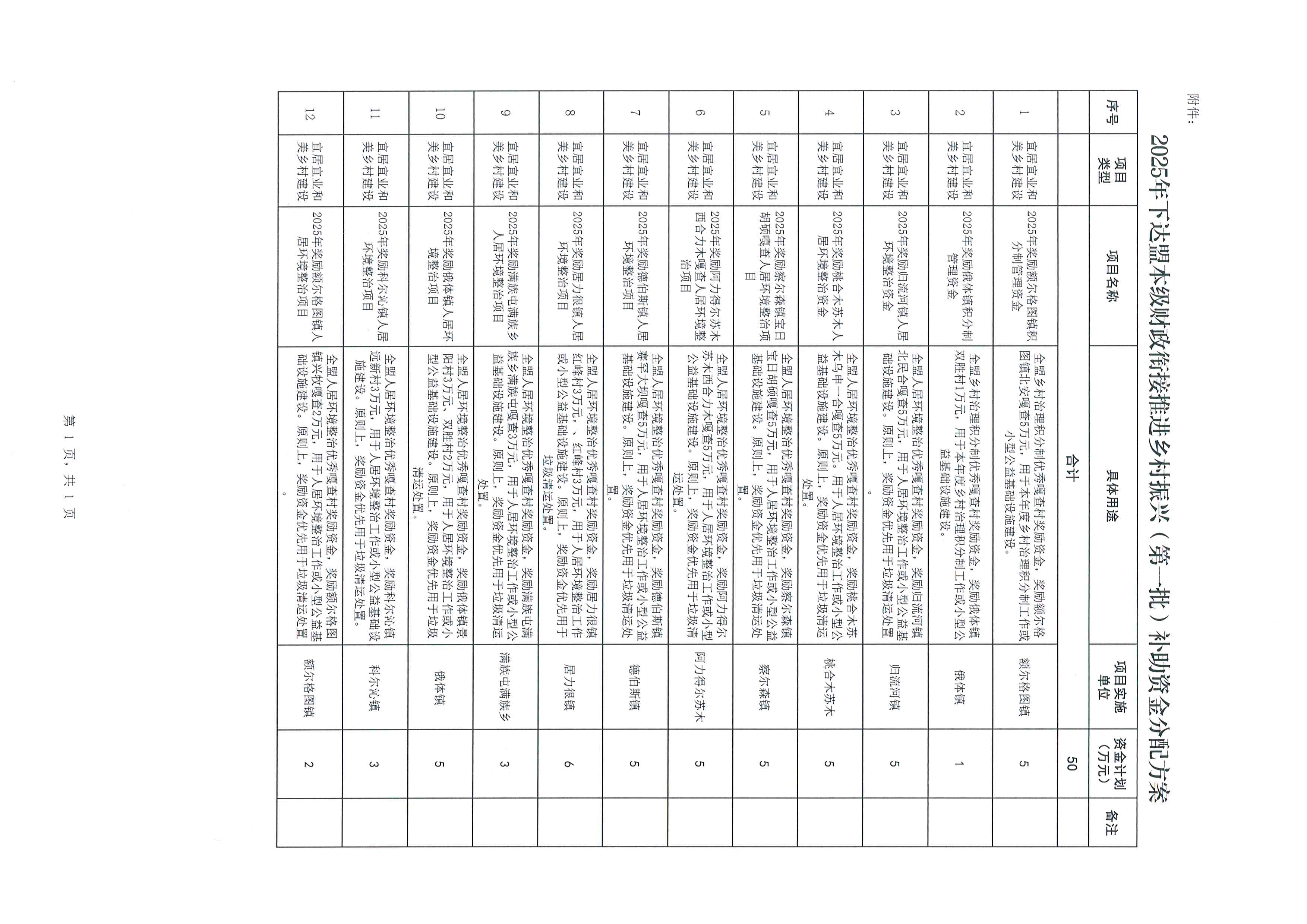 附件:2025年下达盟本级财政衔接推进乡村振兴(第一批)补助资金分配方案(旗财农〔2025〕69号)