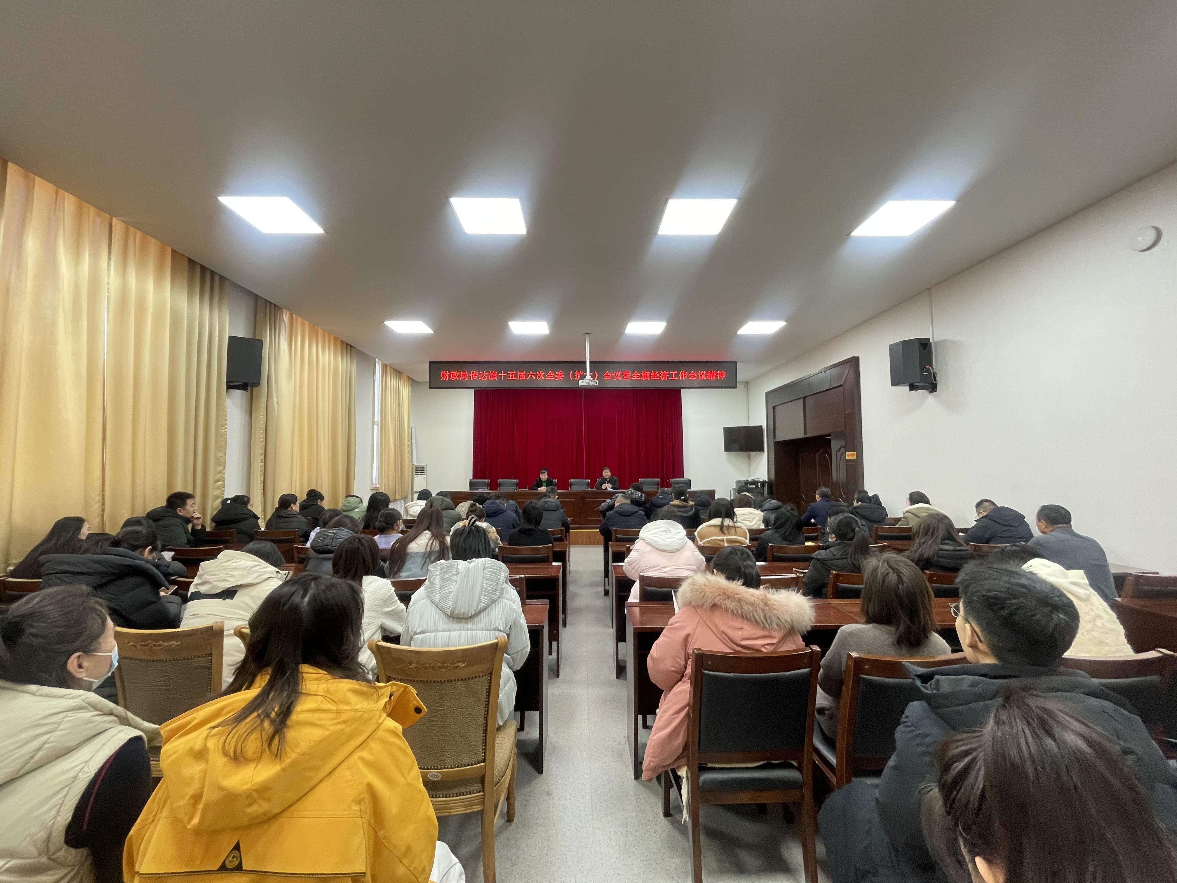 1月5日下午,财政局召开全体干部职工会议,专题传达学习旗十五届六次全委(扩大)会议暨全旗经济工作会议精神。