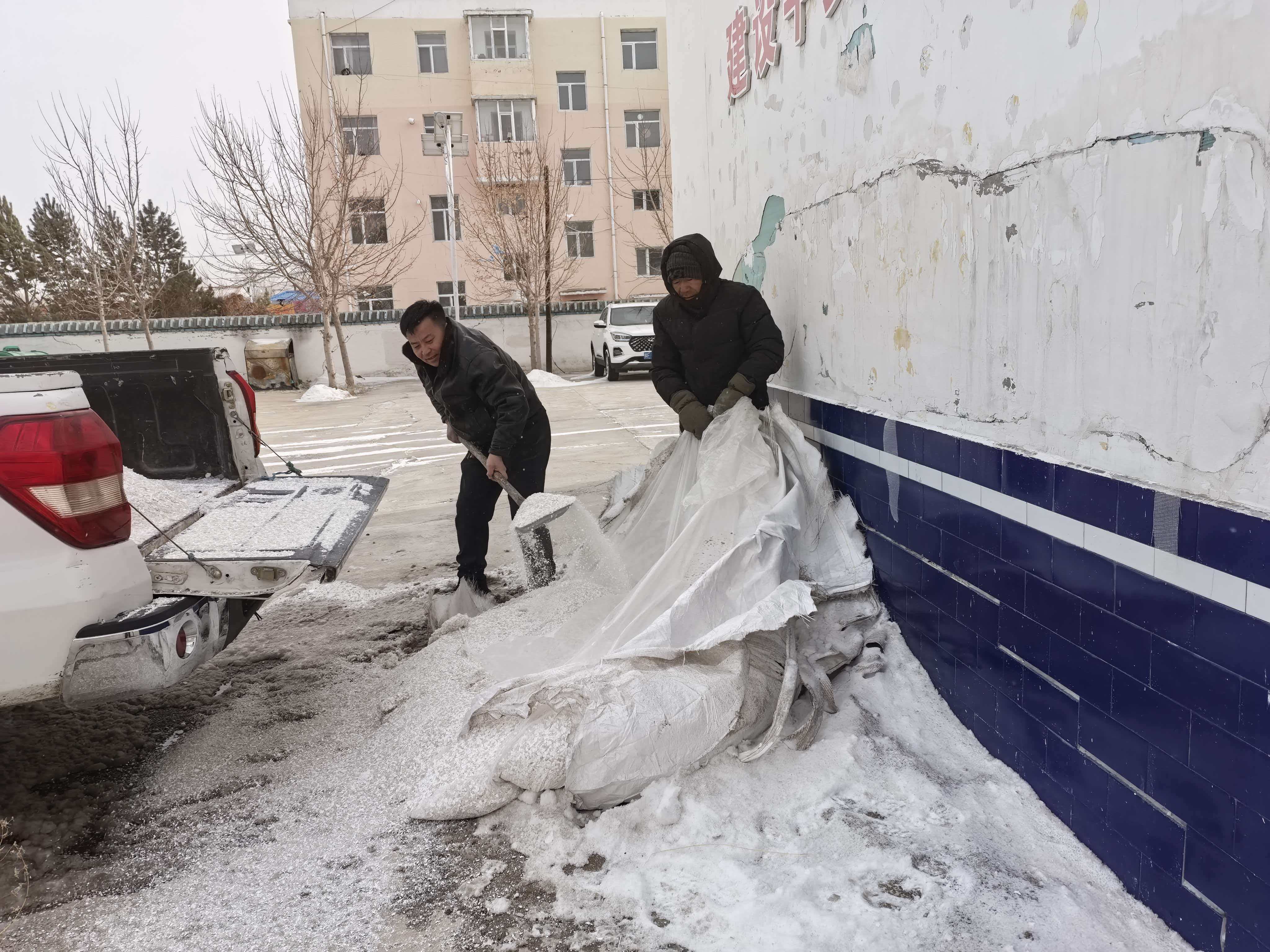 在机械清雪的同时,苏木组织党员干部、新时代文明实践志愿者、牧民群众100余人次,手持铁锹、扫帚等工具,对机械无法作业的巷道、院落周边积雪进行人工清理。大家分工协作、干劲十足,铲雪、堆雪、清运,现场一派热火朝天的景象。党员干部冲锋在前,主动帮助独居老人、困难家庭清理积雪,解决实际困难,用实际行动践行初心使命,让党旗在抗灾一线高高飘扬。