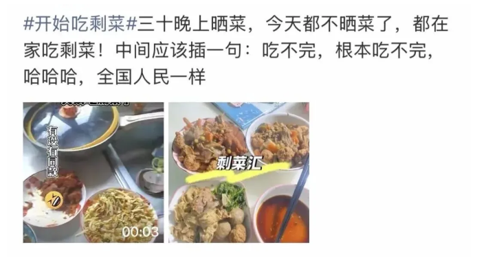 这几天“开始吃剩菜”等话题登上微博热搜,引发了网友的热议。