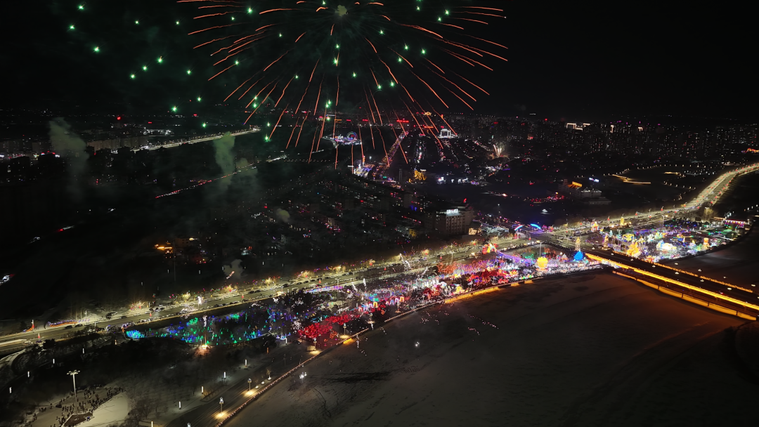 随着夜色渐浓,长达20多分钟的烟花秀在万众期待中登场,声声长啸划破夜空,在头顶绚烂绽放,照亮整座城市,现场群众纷纷拿起手机记录这美好的瞬间,璀璨的焰火和多彩的灯景巧妙呼应,共同构成一幅节日的温馨画卷,也为元宵节增添了浓墨重彩的团圆氛围。