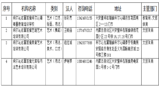 科右前旗校外培训机构最新白名单公示