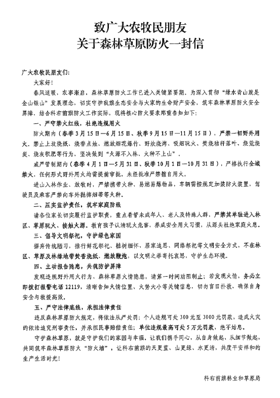 “慎终追远祭先祖,防火责任重于山。”目前,全镇机关干部已全部下沉至各嘎查、社区防火一线,严格按照会议部署到岗到位、履职尽责。