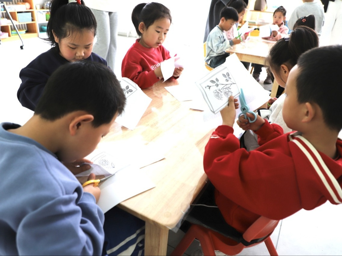 故事课结束后,手工活动拉开序幕。孩子们在书店工作人员指导下,制作创意书签和剪纸。用彩笔、亮片等材料制作书签,用剪刀认真裁剪。一张张充满童趣的作品,不仅锻炼了动手能力,更让孩子们在创作中体会到手工的乐趣。