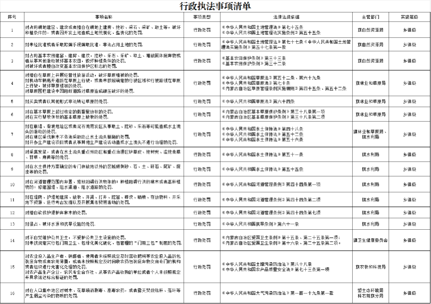 行政执法事项清单